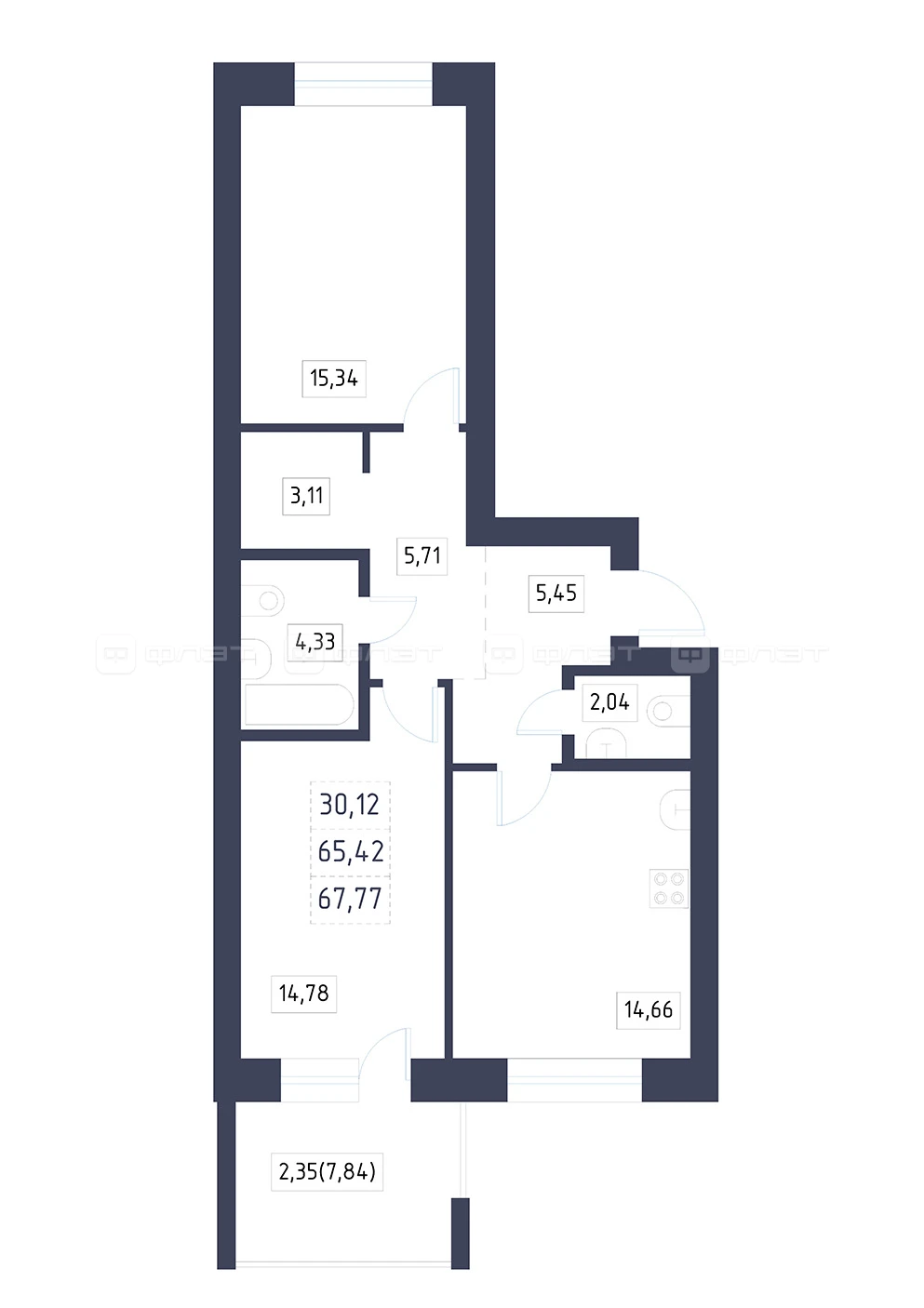 - 67.77/30.12/14.66 м²