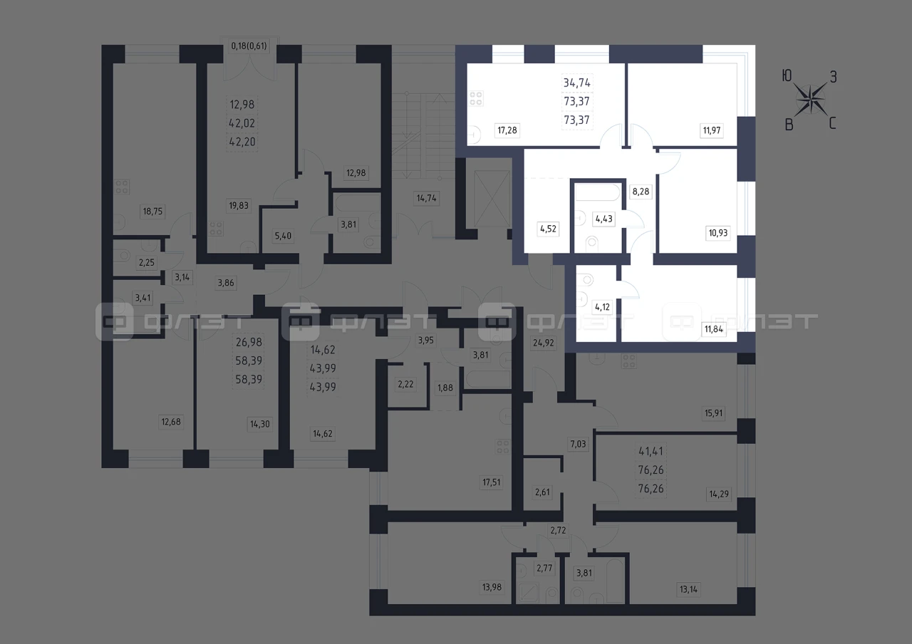- 73.37/34.74/17.28 м²