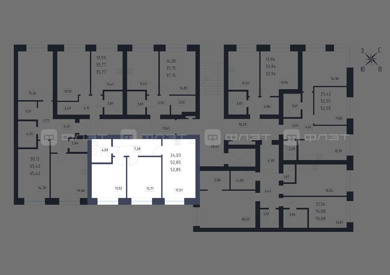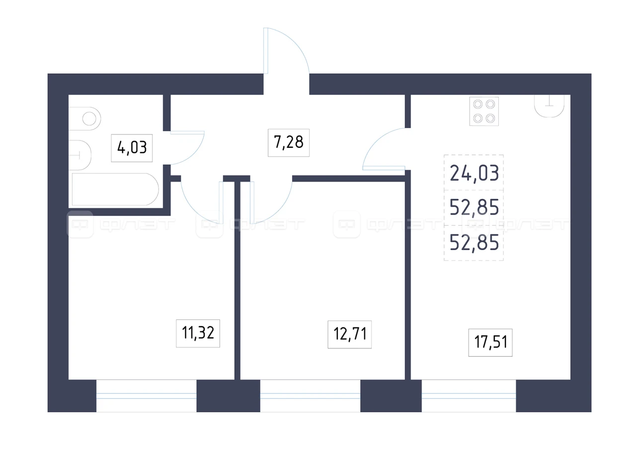 - 52.85/24.03/17.51 м²